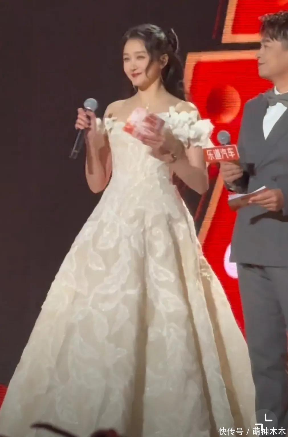 43岁的张韶涵保养有方,面部状态饱满如少女,弥补了造型的不足。她把自己穿成了一棵肩膀发芽树,丝毫不影响美貌。只是全身不好看,即便穿了厚厚的防水台,身材还是五五分。
