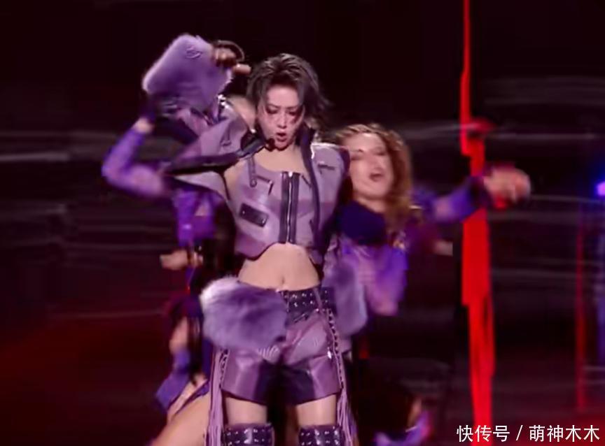 第二套皮草搭修身短裤的造型就很有爱豆感,但是她也没穿出气场,穿上红色皮草显得整个人很木,脱掉之后状态好很多,但是舞蹈能力太差,只能让人注意到四肢太纤瘦,表情管理也一般,整张脸很呆。
