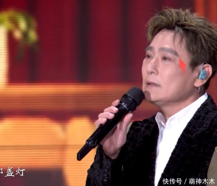张信哲的造型还是很有创意,服装是拼接的蝙蝠袖,袖口是军绿色,头发染了相近色,甚至眉毛也画浅了,但是化妆师可能太赶时髦了直接画了“蜡笔小新”超绝粗眉,很突兀。